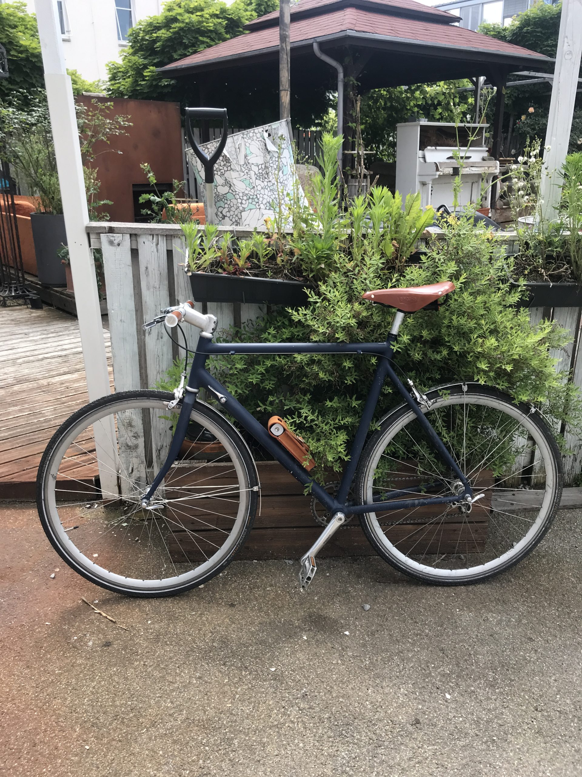 Die Basis war ein Geschenk meines Onkels. Doch mir gefiel die Farbe und der Rennrad Style nicht. Also haben wir aus einem 2004er Rennrad ein Concept Retro Stadtrad mit Racing DNA geschaffen.