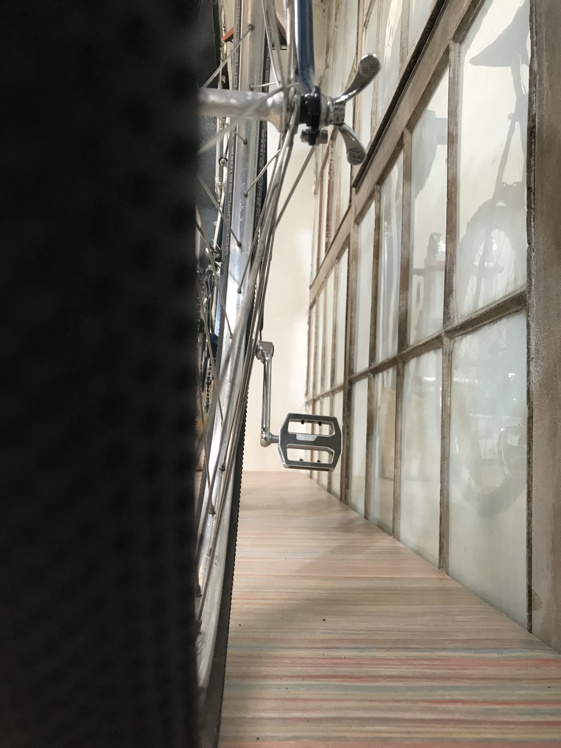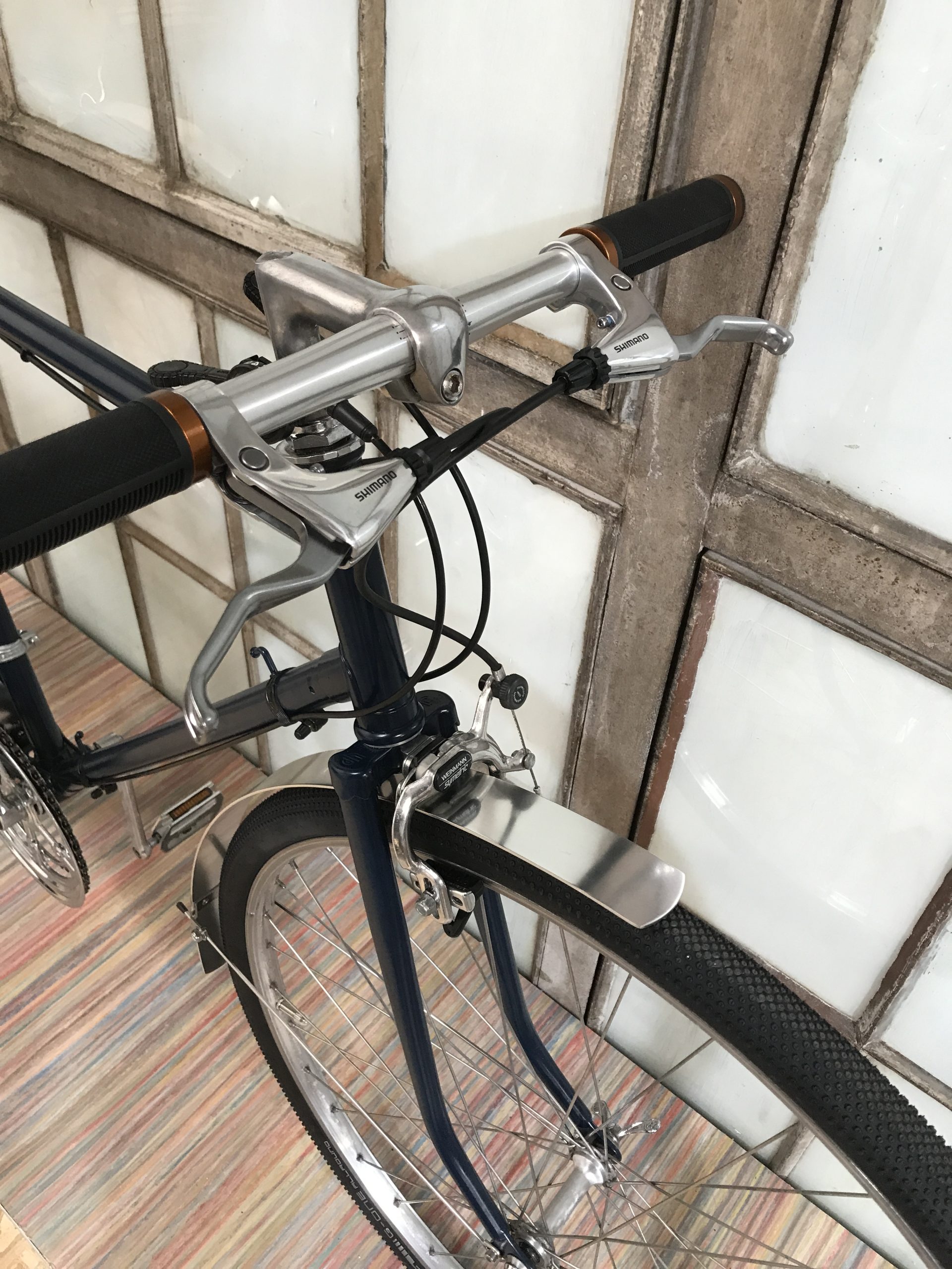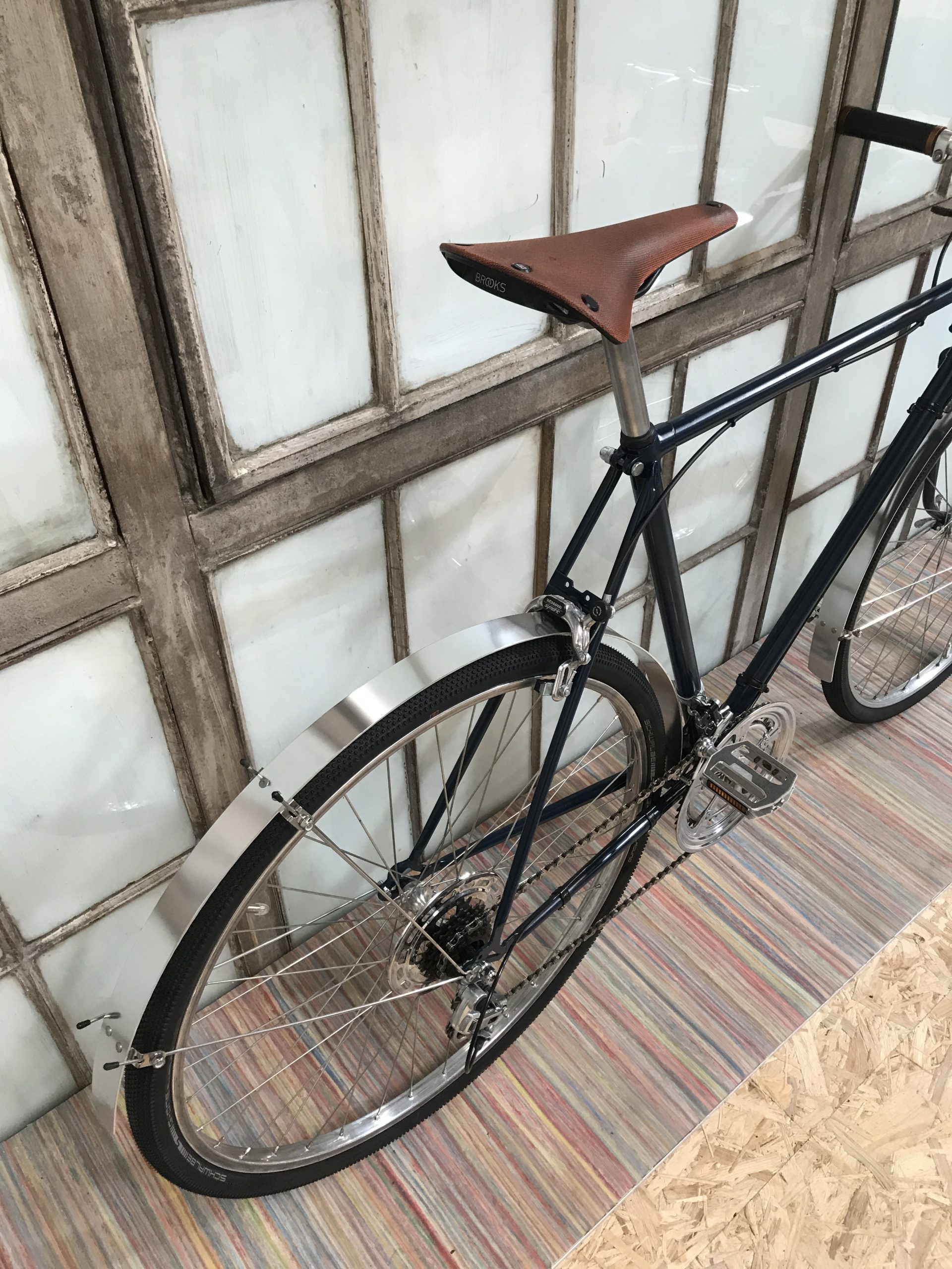 UR 0 war ein echter Hingucker unter meinen Freunden. Einem gefiel es sogar so gut, dass er auch so eine Bike wollte, nur etwas weniger Racing und mehr Alltagstauglichkeit. Ein schöner Stahlrahmen war schnell gefunden, der wurde gestrahlt und in Stahlblau RAL 5011 gepulvert. Die ursprüngliche Schaltgruppe – eine Shimano Positron – erwies sich als sehr kompliziert zum Einstellen (sie hat sich wahrscheinlich deshalb auch nicht durchgesetzt). Als Alternative haben wir eine Shimano 600er Gruppe ausgewählt. Wir haben alle Lager getauscht und sämtliche Alu-Teile: Felgen, Bremsen, Kurbeln, Kettenschutz etc. haben wir gereinigt und aufpoliert. Sie waren alle noch tadellos und nach der Aufbereitung wieder wie neu.